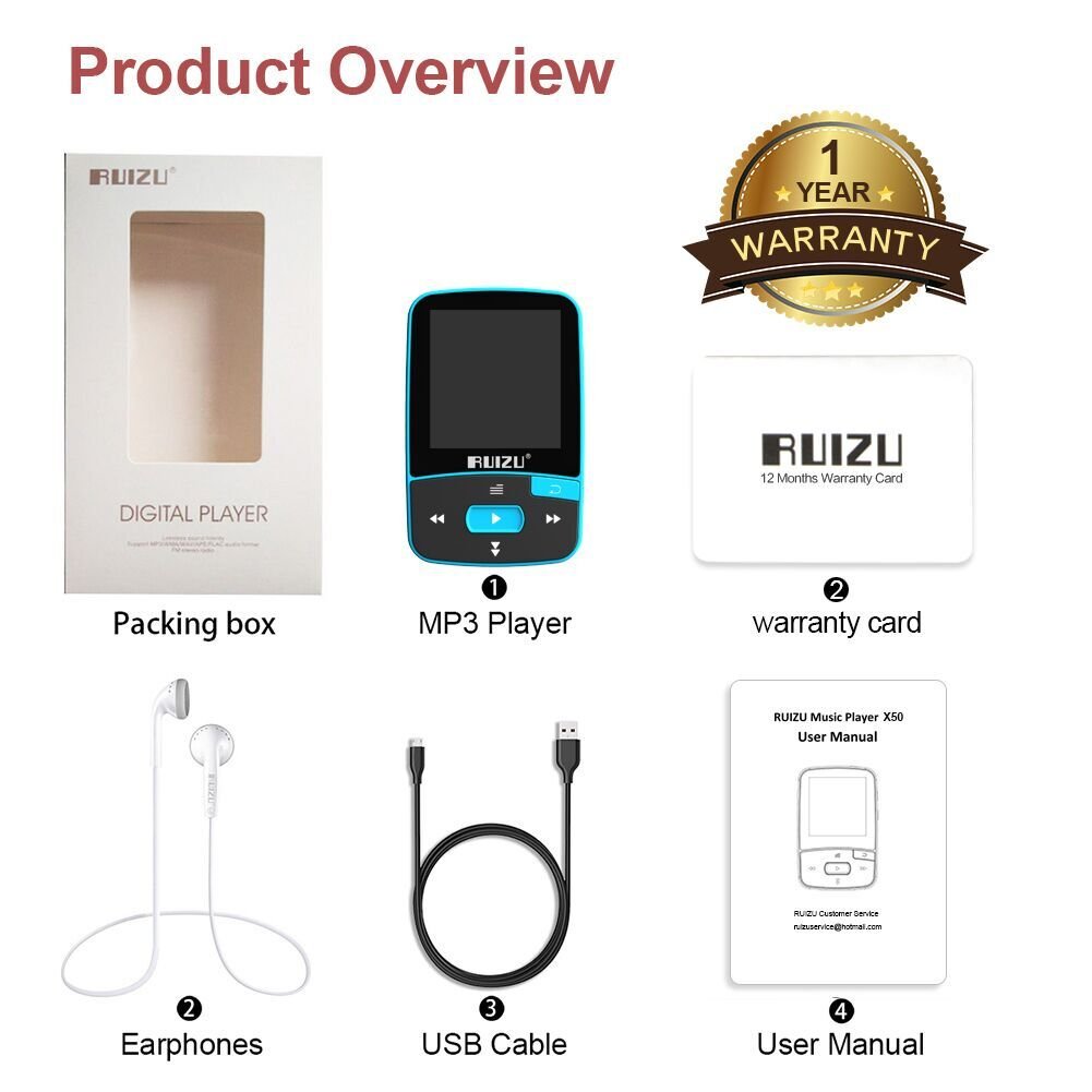 - 【Accessories and Warranty】Durable High fidelity Headphones are included, enjoy your music wherever you go with this RUIZU X50 Clip MP3 Player now, it comes with 100% Satisfaction Guaranteed for 30 Day Money Back, 1 Year Warranty and Lifetime Service !