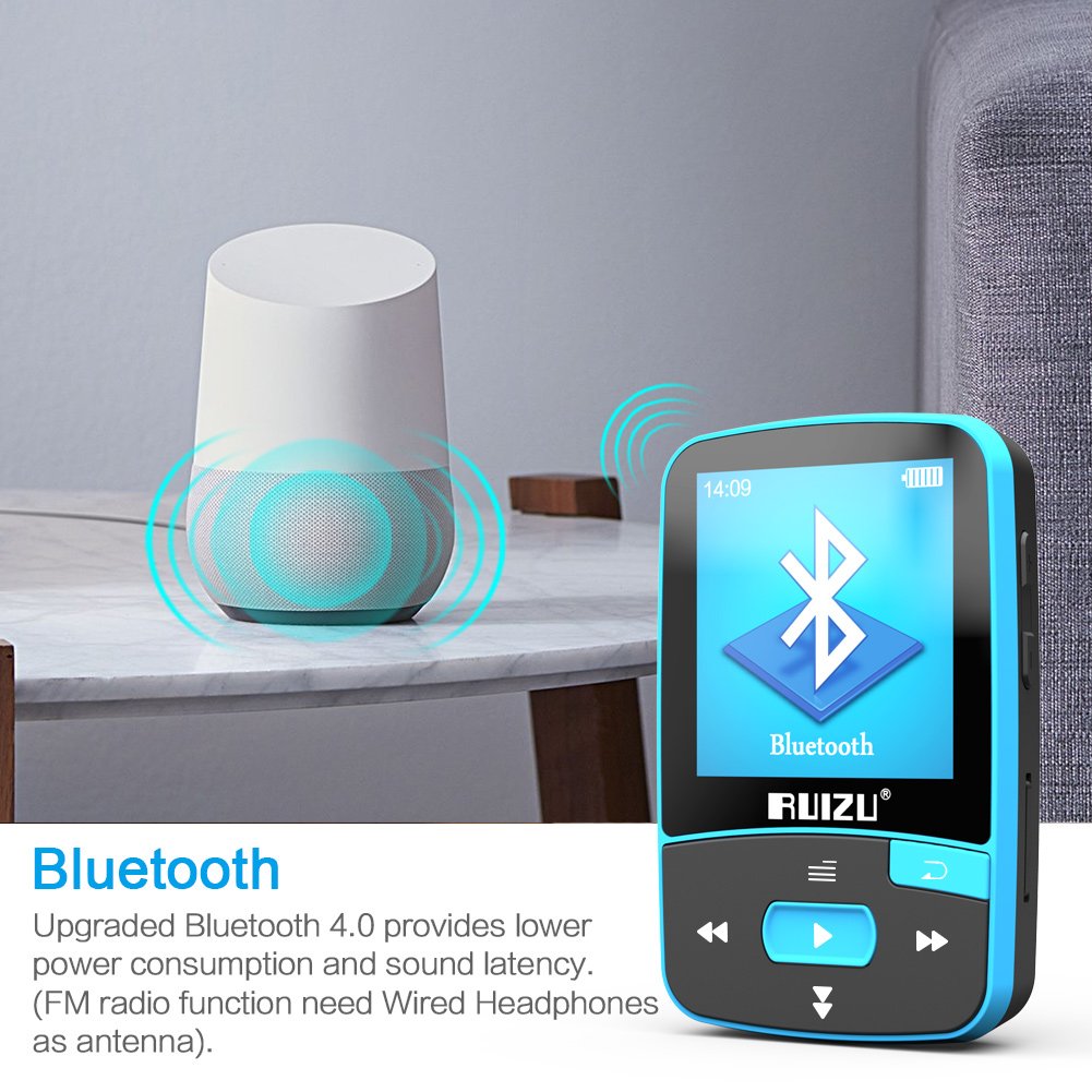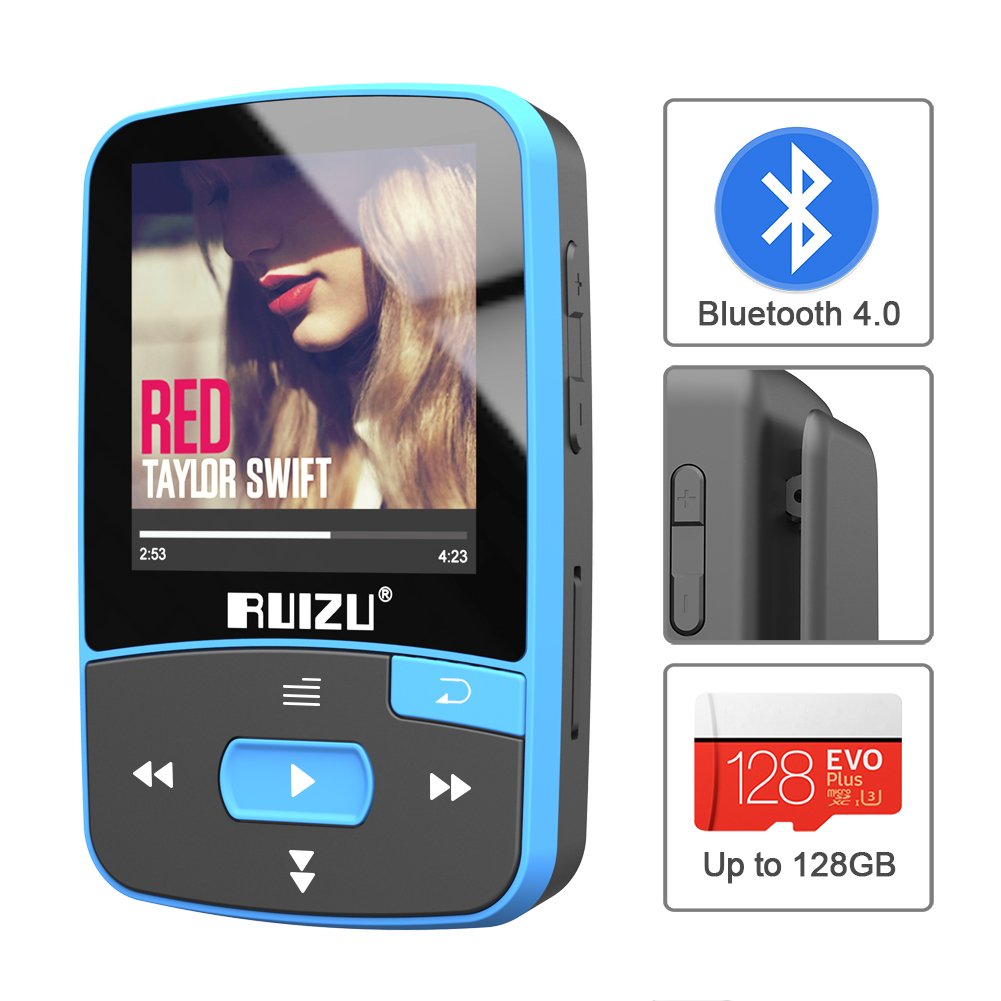 RUIZU X50 Bluetooth 4.0 Mp3 Player, Portable Clip Sport Mp3 Music Player for Running with FM Radio and Pedometer, Support Up to 128GB (Blue)